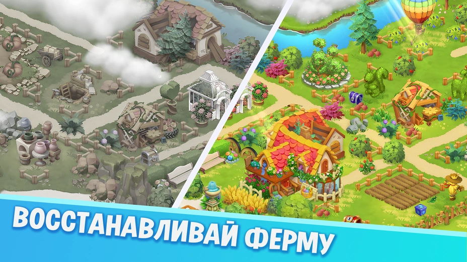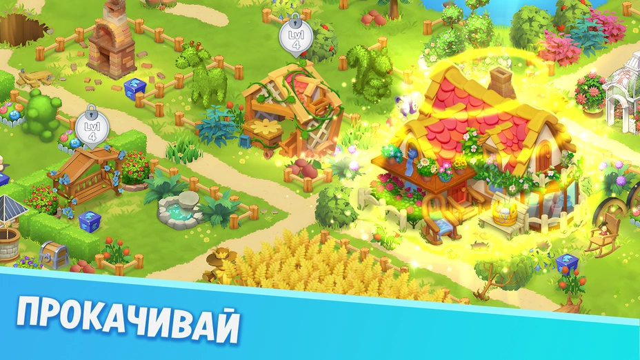 - 🧹 Очищай поле — на старте многие участки завалены мусором и зарослями. Убирайте их, освобождая место для новых построек и посадок.